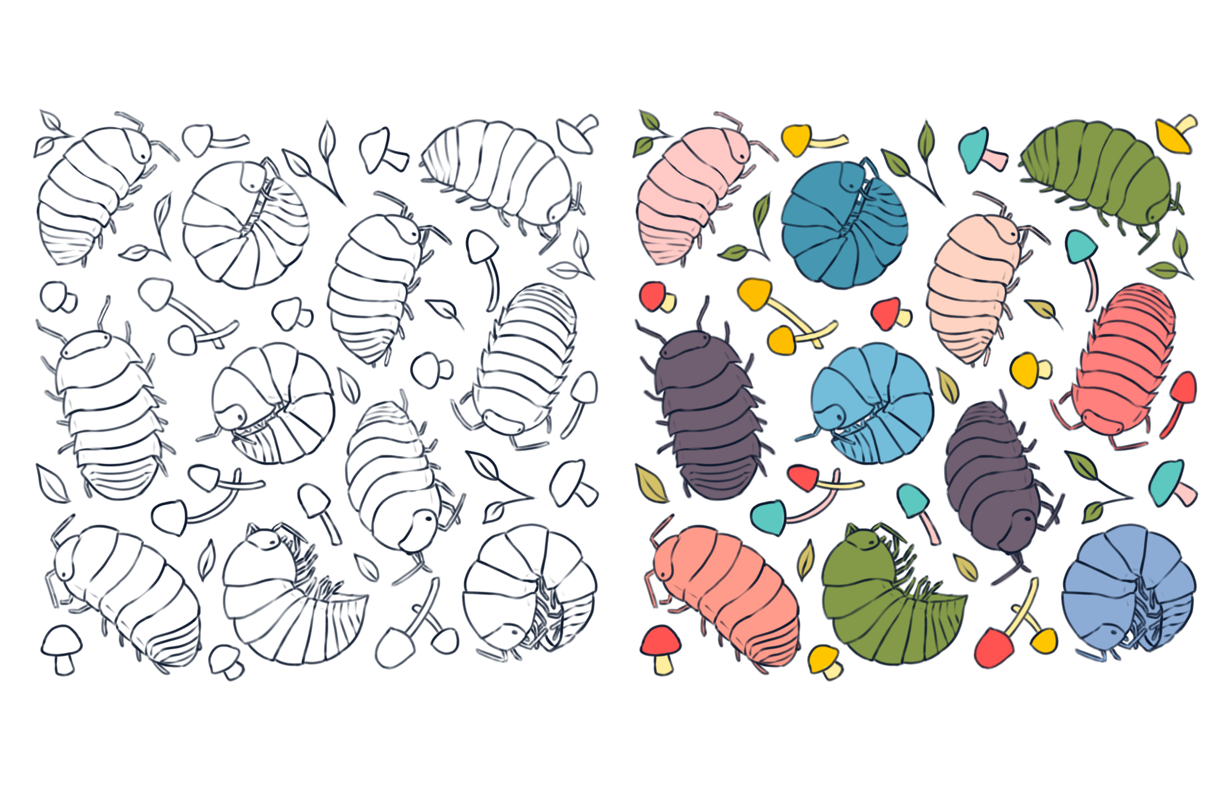 Inspired by a fascination with insects, this design takes a common bug we may have come across in our daily lives and uses that to create a dynamic composition utilizing their natural round sillouhettes.